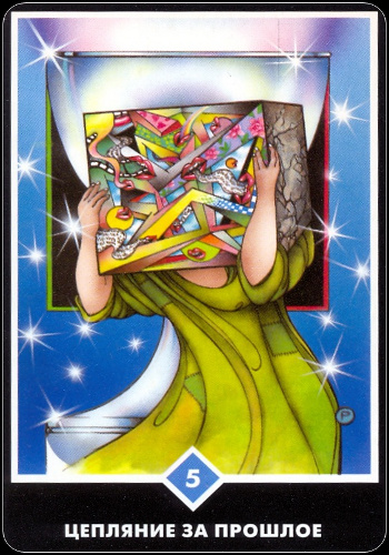 Фигура, изображенная на этой карте, настолько сосредоточена на том, чтобы удержать свой ящик воспоминаний, что повернулась спиной к сверкающему бокалу благословений, доступному здесь и сейчас. Ее ностальгия по прошлому действительно делает ее тупой и, в добавок ко всему, нищей, как мы видим по ее залатанной и рваной одежде. Конечно, она могла бы не быть нищей, но она закрыта для удовольствий, которые предлагаются в настоящем. Настало время принять тот факт, что прошлое ушло, и любое усилие повторить его — это верный путь затеряться в старом хламе, который вы уже переросли бы, если бы не были столь заняты, цепляясь за то, через что вы уже прошли. Сделайте глубокий вдох, поставьте ящик, перевяжите его хорошенькой ленточкой, если хотите, и устройте ему нежное и почтительное прощание. Жизнь идет своим чередом, и есть опасность раньше времени превратиться в ископаемое!